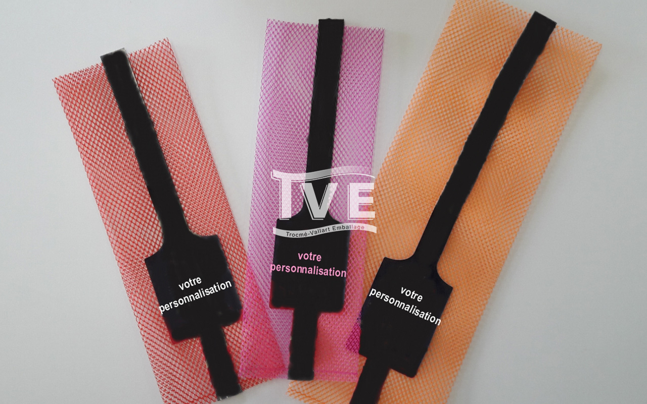 Sacs en polyéthylène avec une étiquette personnalisée soudée au fond du sac.